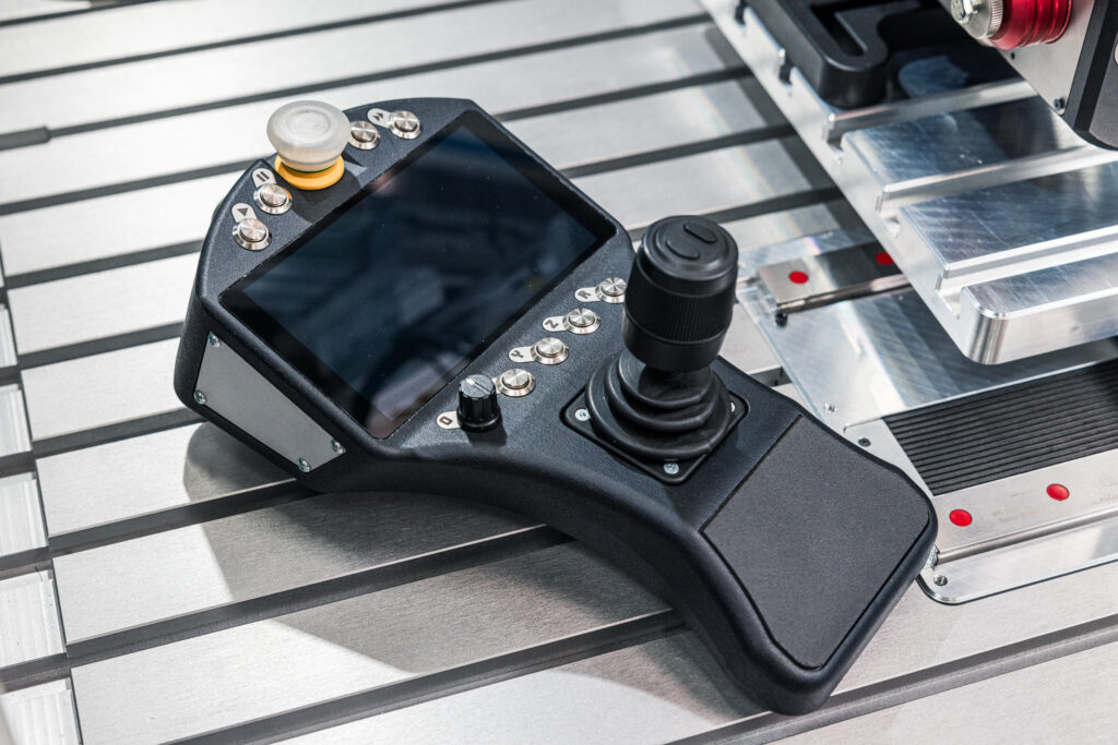 Der innovative Joystick ermöglicht schnelles und flexibles Programmieren/Teachen direkt an der Anlage. Basierend auf der Steuerung der HLA-M Grundmaschine, kann die HLA-M+ Variante, ausgerüstet mit motorischen Achsen und einem Joystick, zyklengesteuert Pfade reproduzierbar abarbeiten. Ähnlich dem „Teach-in“ Prozess in der Robotersteuerung fährt der Werker alle gewünschten Bewegungen ab und lernt diese mittels Tastendruck am Joystick ein. Die gespeicherten Pfade können dann unter voller Kontrolle des Werkers per Druck auf das Fußpedal abgearbeitet (geschweißt) werden.